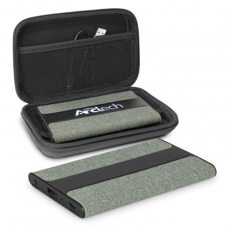 Futuristic 4000mAh power bank which has a smart heather style, woven poly-canvas finish with black trim. Lumos really attracts attention with its unique ability to brilliantly light up a brand. The artwork is laser engraved into the black trim on top of the power bank and lights up when it is being used. It has a charging indicator LED and is easily recharged in 5-6 hours from any USB port or a mains adapter. Comprehensive instructions and a Micro-B USB cable are included. An optional EVA carry case and a triple connector cable are available on request.