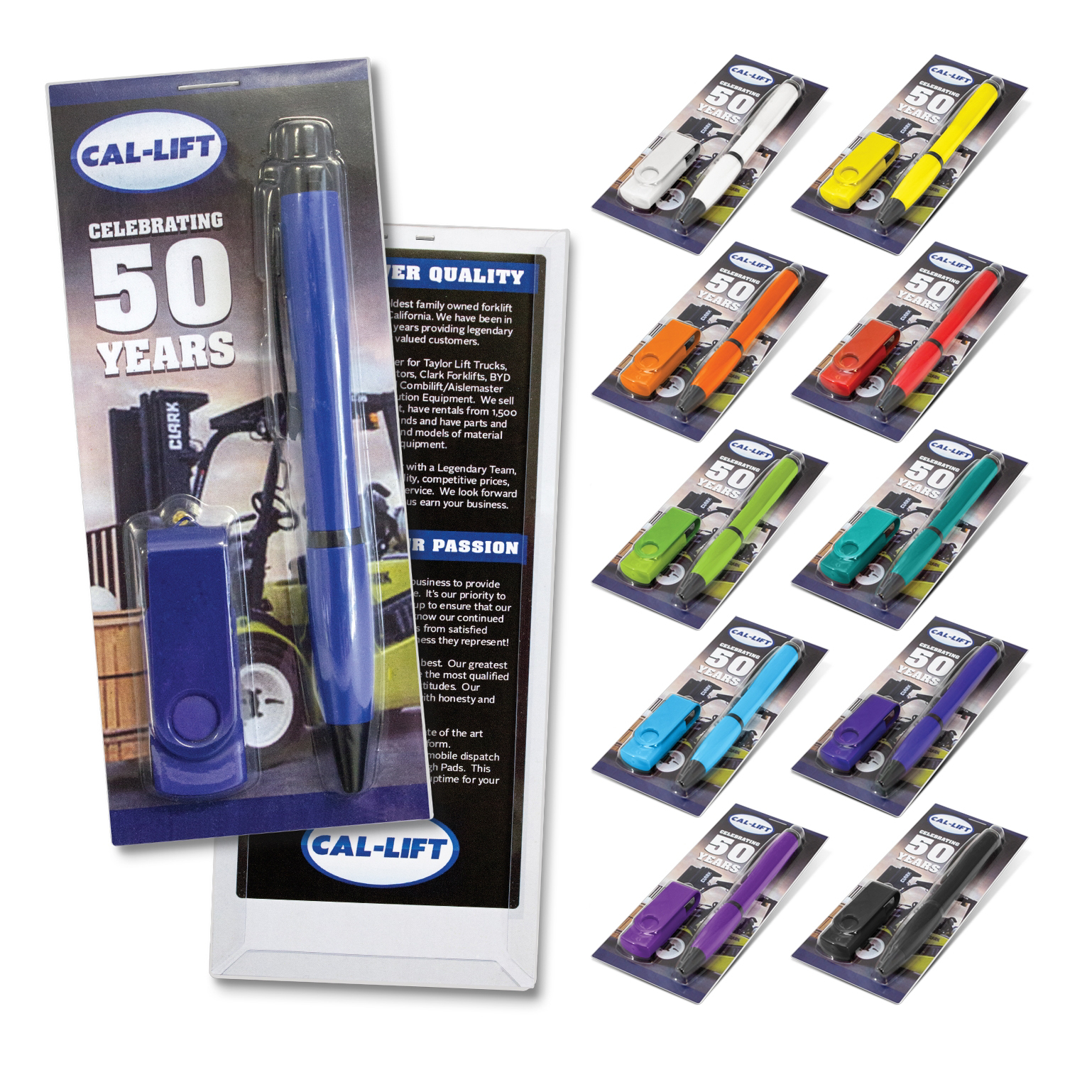 Pen and USB - White, Yellow, Orange, Red, Bright Green, Teal, Light Blue, Dark Blue, Purple, Black.